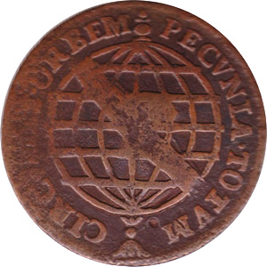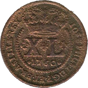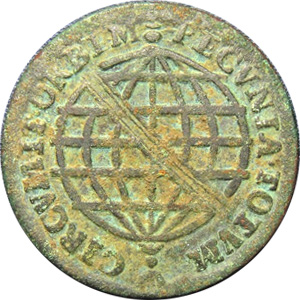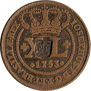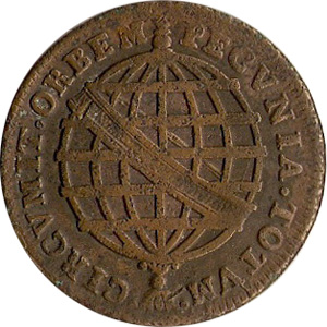 ANVERSONo campo o algarismo romano do valor entre dois florões, encimados pela coroa real, tendo por baixo a data, dentro de um círculo de pérolas, inteceptados pela coroa. Legenda IOSEPHUS. I. D. G. P. ET. BRASIL. REXREVERSOLegenda PECVNIA. TOTVM. CIRCVMIT. ORBEM. No centro esfera armilar sem letra monetária