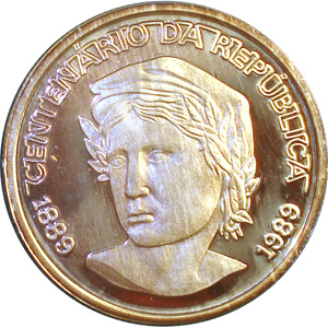 Efígie da República e inscrição 1889 CENTENÁRIO DA REPÚBLICA 1989