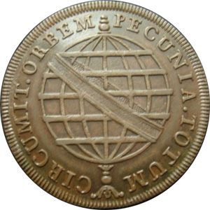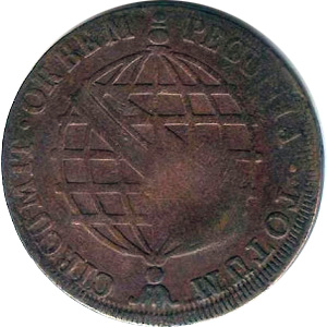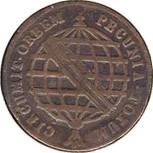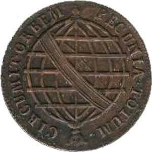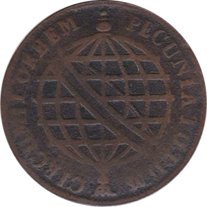 ANVERSOMARIA. I. E. PETRUS. III. D. G. P. E. BRASILIÆ. REGESREVERSOPECUNIA. TOTUM. CIRCUMIT. ORBEM
