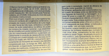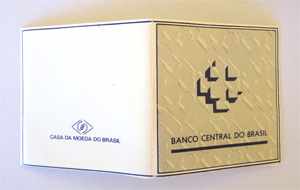 EstojoA moeda foi fornecida acondicionada em estojo aveludado dentro de cápsula plástica junto a folheto explicativo bilíngue (português e inglês).