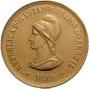 CURIOSIDADESVocê sabia que no século 19, usava-se uma escala impressa em papel para medir moedas...- A Escala de Mionnet - A História do Cifrão - Reformas Monetárias - Cara ou Coroa? A MOEDA NO TEMPOA história da moeda no Brasil contada através dos anos desde os tempos coloniais até os dias de hoje.E MAIS...- Níveis de conservação- Conservando moedas - Coroa Alta e Coroa Baixa - Graus de Raridade - Siglas de Gravadores - Anversos e Reversos - Ensaios e Provas - Eixos e Reversos - Legendas e Inscrições - Materiais e Metais - Moedas de Cobre - Descobrimento do Brasil - Colonização do Brasil - D. Pedro II do Brasil - e ainda mais... As mais maisO Brasil já produziu inúmeros tipos de moedas com características bastante variadas. Moedas de diversos tamanhos, materiais, pesos e características próprias. Esta página promove, a título de curiosidade, a divulgação da classificação das "mais mais". Faz parte desse ranking somente as moedas catalogadas nesse site e que tenham informações cadastradas. A mais valiosaA moeda mais valiosa de nossa numária é a "Peça da Coroação". Desenvolvida especialmente para comemoração da coroação após independência proclamada por D. Pedro I, o qual desaprovou-a mas, chegaram a ser produzidas 64 peças e somente 16 são ainda conhecidas. Em 2012, já havia sido leiloada em Chicago, por US$ 138.000. No início de 2014, foi arrematada em novo leilão em Nova Iorque, por quase US$ 500.000. Características: Ouro 916/1000; 1822; 14,34 g; 32,2 mm de diâmetro. A maiorEm relação ao diâmetro, a maior até agora produzida foi em 1900, comemorativa por ocasião do quarto centenário do descobrimento do Brasil. A de valor mais alto da série de 4 moedas de prata, 4000 réis, mede 50,6 mm de diâmetro. Provavelmente, foram as primeiras moedas feitas especialmente para colecionadores, por não ser de circulação comum. Características: Prata 916/1000; 1900; 51 g; 50,6 mm de diâmetro. A 2ª colocadaApesar de fabricadas no Brasil, na Casa da Moeda do Rio de Janeiro, as macutas foram feitas para circular em Angola e não no território nacional. Mesmo assim, consideramos fazer parte de nossa numária. As moedas de cobre valendo 2 macutas, produzidas em 1815 e 1816, são as segunda maiores com 45 mm de diâmetro. Características: Cobre; 1815-1816; 28,68 g; 45 mm de diâmetro. A menor - pré RepúblicaO ouro até que foi abundante e sempre foi muito precioso. Da mesma forma que o ouro ia se escasseando, a inflação ia aumentando. Moedas de ouro com valor baixo somente poderiam ser produzidas certificando-se que o valor de circulação fosse maior do que elas derretidas. O jeito foi diminuir e emagrecer cada vez mais as moedas. Ou deixar de produzi-las! Em 1734, a Casa da Moeda do Rio de Janeiro cunhava, entra outras, moedas de ouro de 400 réis, para circulação no Brasil e em Portugal. Para compensar, essas moedas mediam míseros 13,5 mm e pesavam menos de 1 grama. Eram conhecidas como "cruzadinho". Características: Ouro 916,6/1000; 1734; 0,89 g; 13,5 mm de diâmetro. A 2ª colocadaApesar de diâmetro ainda menor - se é que se pode medir o diâmetro de uma moeda quadrada! - os 3 florins holandeses de ouro, com seus 13 mm, ficaram em segundo lugar por serem mais pesados. Os florins foram fabricados em solo nacional durante a ocupação holandesa do nordeste brasileiro, pelos próprios holandeses, para pagamento dos soldados. São as primeiras moedas onde consta o nome BRASIL. Características: Ouro (titulagem variada a partir de 900/1000); 1645 a 1646; entre 1,90 e 1,92 g; 13 mm de lado (18 mm na diagonal?). O maior valor facial - pré RepúblicaO ouro abundante dava a oportunidade para cunhagem de moedas com grande quantidade de ouro, pesadas, de grande valor aquisitivo e, por consequência, valores altos. A moeda de maior valor facial que já passou por nossas terras valia 20.000 réis. Era uma das mais belas moedas e de maior valor real do mundo. As primeiras são datadas de 1724, Brasil Colônia: os dobrões oriundos das minas de Vila Rica, até 1727. Posteriormente, novas emissões durante o reinado de D. Pedro II que teve continuidade até o início da República. Curiosamente, essas novas emissões nunca mais apresentaram a indicação do valor gravado na moeda. Características: Ouro 916,6/1000; 1724 a 1727; 53,78 g; 37 mm de diâmetro. Outras emissões de moedas com valor de 20$000: