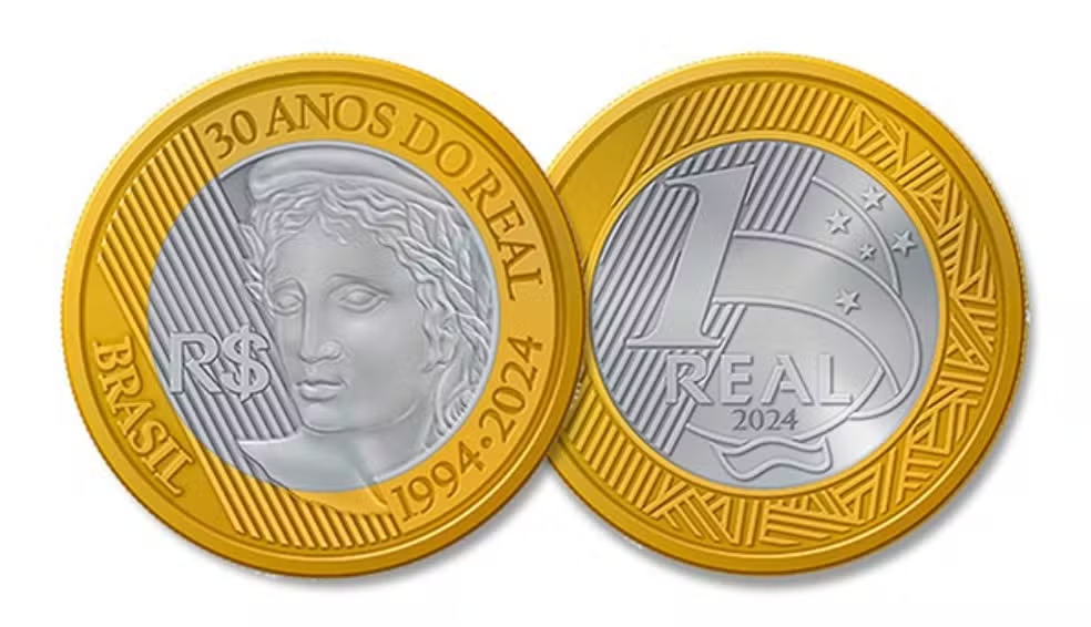 2024 Para comemoração dos 30 anos do Plano Real é lançada moeda comemorativa, de circulação comum
