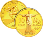 2014 Inicia-se a série de moedas comemorativas da Olimpíada Rio 2016 produzidas em ouro, prata