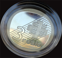 EstojoA moeda foi fornecida acondicionada em estojo aveludado dentro de cápsula plástica junto a folheto explicativo bilíngue (português e inglês).
