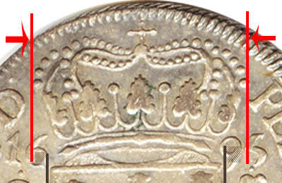 CURIOSIDADESVocê sabia que no século 19, usava-se uma escala impressa em papel para medir moedas...- A Escala de Mionnet - A História do Cifrão - Reformas Monetárias - Cara ou Coroa? A MOEDA NO TEMPOA história da moeda no Brasil contada através dos anos desde os tempos coloniais até os dias de hoje.E MAIS...- Níveis de conservação- Conservando moedas - Coroa Alta e Coroa Baixa - Graus de Raridade - Siglas de Gravadores - Anversos e Reversos - Ensaios e Provas - Eixos e Reversos - Legendas e Inscrições - Materiais e Metais - Moedas de Cobre - Descobrimento do Brasil - Colonização do Brasil - D. Pedro II do Brasil - e ainda mais... Coroa Larga e Coroa EstreitaDurante o período colonial, houve variações significativas no desenho da coroa portuguesa em várias moedas de mesmo valor, inclusive dentro do mesmo ano. Uma das classificações usadas é a distinção entre coroa alta e coroa baixa. Contudo, existe uma outra classificação também aplicável: coroa larga e coroa estreita. Embora essa classificação seja raramente utilizada, ela é notoriamente aplicada para diferenciar as moedas de prata de primeiro e segundo tipos produzidas pela Casa da Moeda da Bahia em 1695. O catálogo Vieira também usa as denominações "larga" e "estreita" para as moedas de ouro de 2000 réis de 1778, mas isso claramente se refere às classificações de coroa alta e baixa, respectivamente. Coroa EstreitaA coroa estreita é caracterizada por ter uma largura quase igual à do escudo logo abaixo dela. Além disso, os arcos da coroa são quase da mesma largura do diadema.